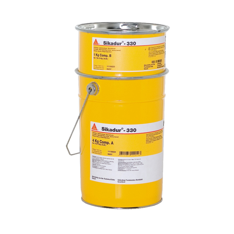 2- BİLEŞENLİ EPOKSİ ESASLI DOYURMA (LAMİNASYON) REÇİNESİ Sikadur®-330, iki bileşenli, tiksotrpik özellikli epoksi esaslı doyurma reçinesi ve yapıştırıcıdır. Kolay karıştırılır, mala ve doyurma rulosu ile uygulaması kolaydır. Elle empregnasyon (doyurma) işlemi içindir. Düşey ve baş üstü yüzeylerde uygulanır.